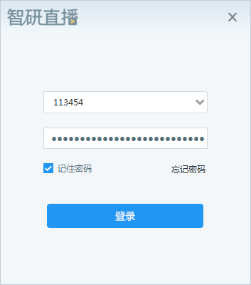 2、 后台自动生成频道号和密码,下载安装智研直播助手,用频道号和密码登录;